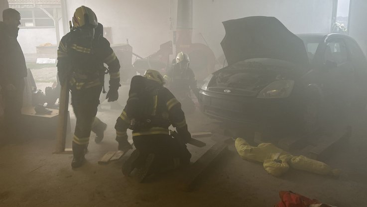 Die Übungsannahme lautete "Technischer Einsatz klein". Die Feuerwehr Oberbairing wurde zu einem Einsatz mit einer eingeklemmten Person unter einem PKW alarmiert. Das Rüstlöschfahrzeug (RLF) unter der Leitung von Einsatzleiter HBM Patrik Oberegger und das Kleinlöschfahrzeug (KLF) trafen nach wenigen Minuten am Übungsort, dem Bauernhof Hörweiger, ein. Vor Ort stellte sich schnell heraus, dass sich das herabgestürzte Auto entzündet hatte, weshalb weitere Kräfte benötigt wurden. Die Feuerwehr Altenberg wurde nachalarmiert. Unter schwerem Atemschutz und mithilfe des hydraulischen Rettungsgeräts begann die Menschenrettung.