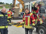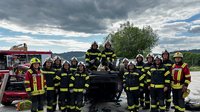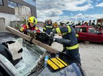 Unter dem Motto „Learning by Doing“ wurden an zwei realitätsnah vorbereiteten Unfallfahrzeugen verschiedene Rettungstechniken und Einsatzstrategien geübt und reflektiert. Besonders im Fokus stand dabei die Kettenrettung – zunächst theoretisch erklärt und anschließend unter fachkundiger Anleitung praktisch umgesetzt.
